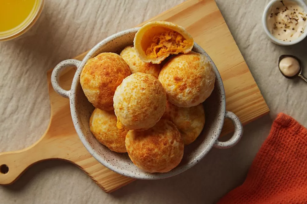 pão de queijo recheado frango cru congelado.